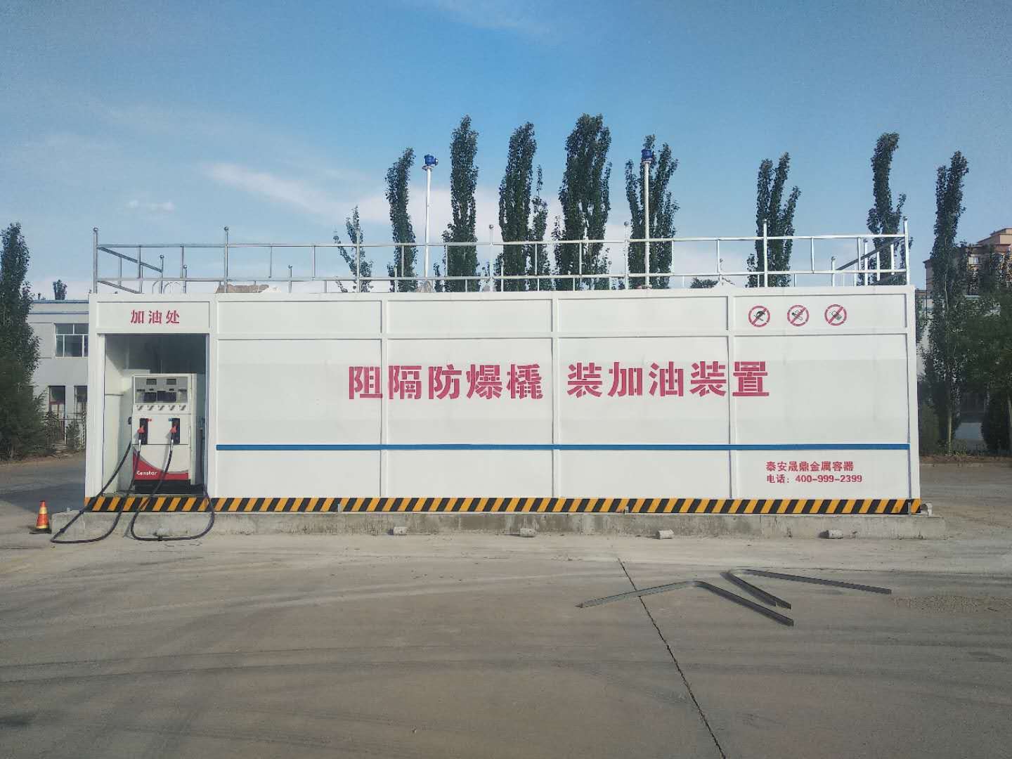撬裝式加油裝置一種阻隔防爆撬裝式的加油設(shè)施,一種新型的汽車(chē)地面加油站,集地面阻隔防爆儲(chǔ)油罐、加油室、阻隔防爆油氣回收器和自動(dòng)滅火器為一整體,位置相對(duì)固定,可以實(shí)現(xiàn)儲(chǔ)油罐和加油機(jī)的搭配和整體協(xié)調(diào),具有防火防爆、安全環(huán)保、占地面積小、使用和維護(hù)方便等諸多優(yōu)點(diǎn)。